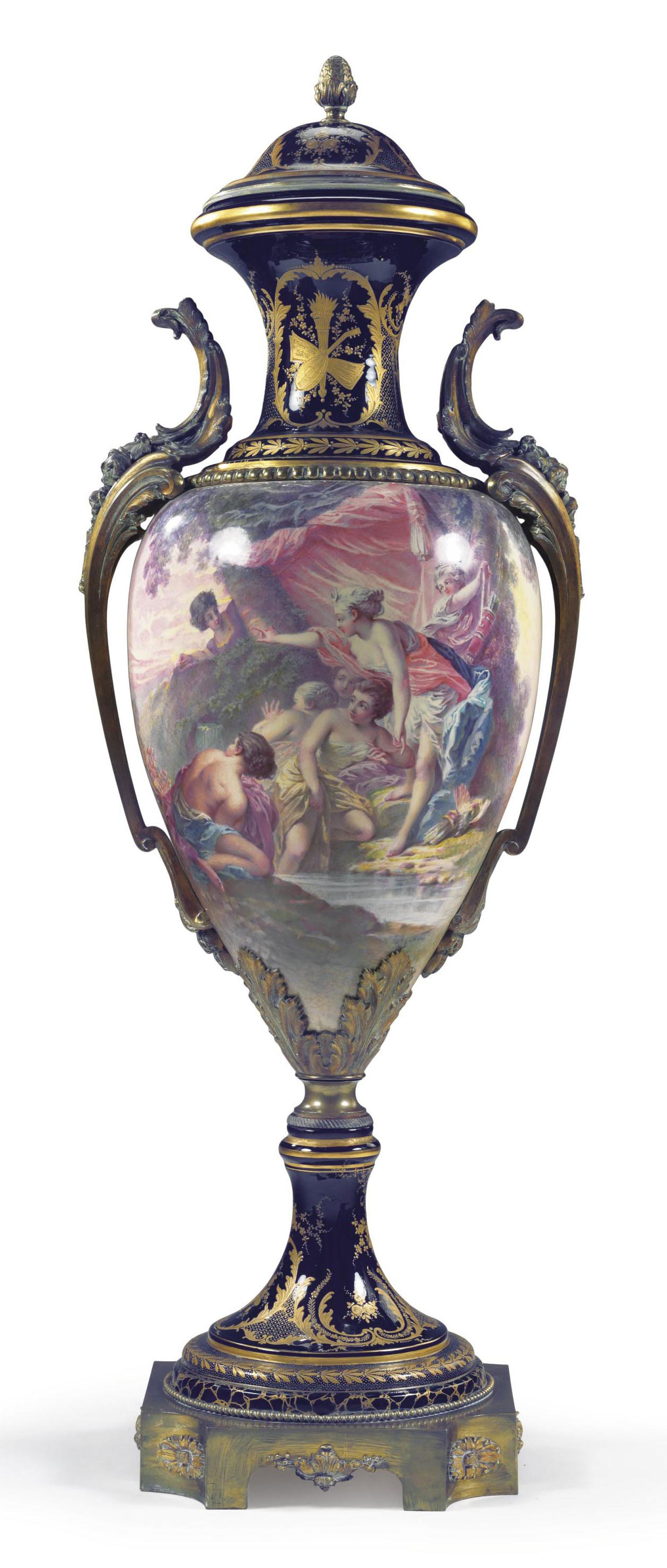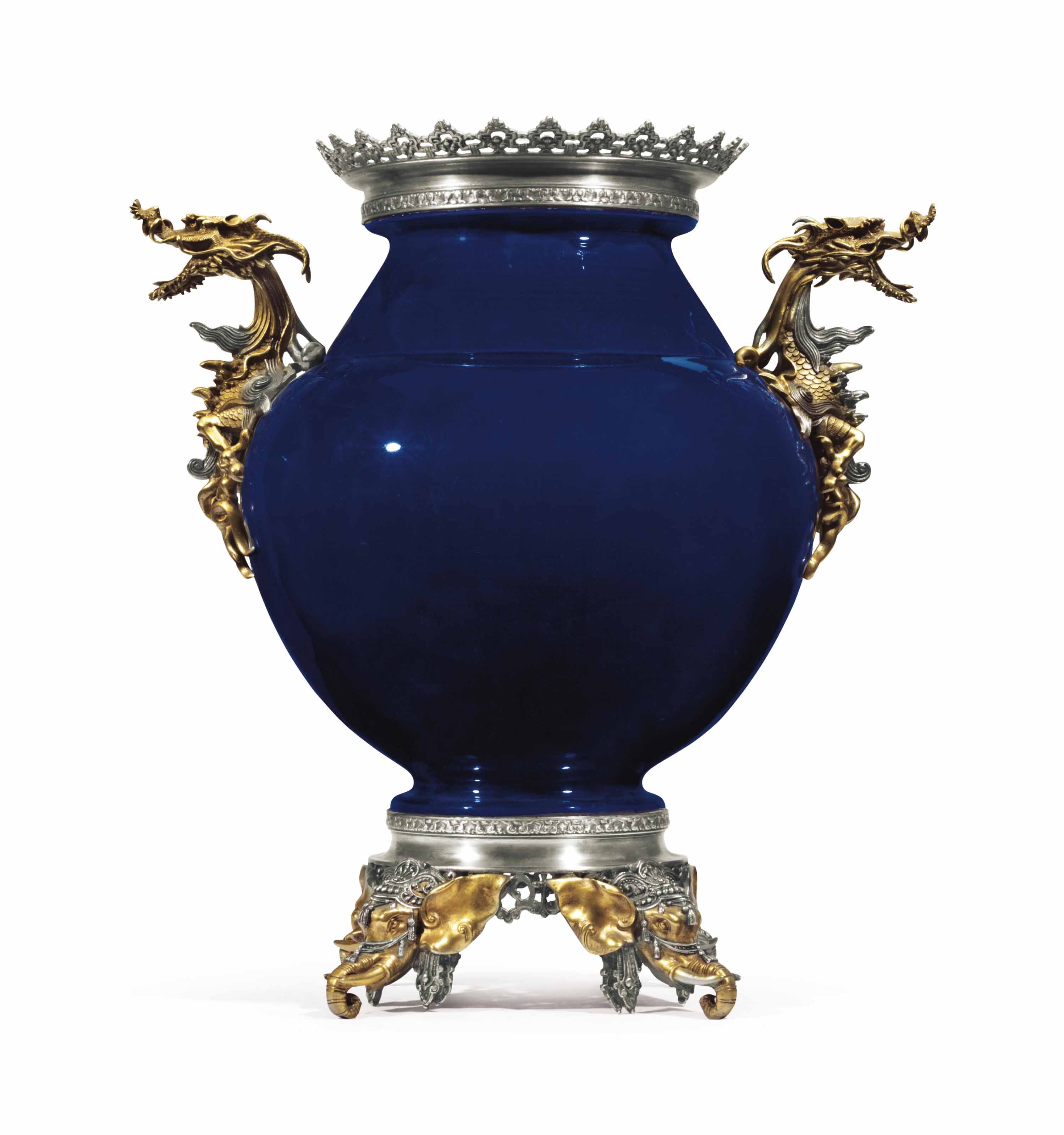 ÌÎÍÓÌÅÍÒÀËÜÍÀß ÖÎÊÎËÜÍÀß ÂÀÇÀ Â ÑÅÂÐÑÊÎÌ ÑÒÈËÅ Ñ ÊÎÁÀËÜÒÎÂÎ-ÑÈÍÈÌ ÏÎÊÐÛÒÈÅÌ ÎÒ ORMOLU ÊÎÍÅÖ 19 ÂÅÊÀ, ÔÀËÜØÈÂÀß ÑÈÍßß ÍÀÊËÀÄÍÀß ÁÓÊÂÀ L, ÏÎÄÏÈÑÜ MAXANT