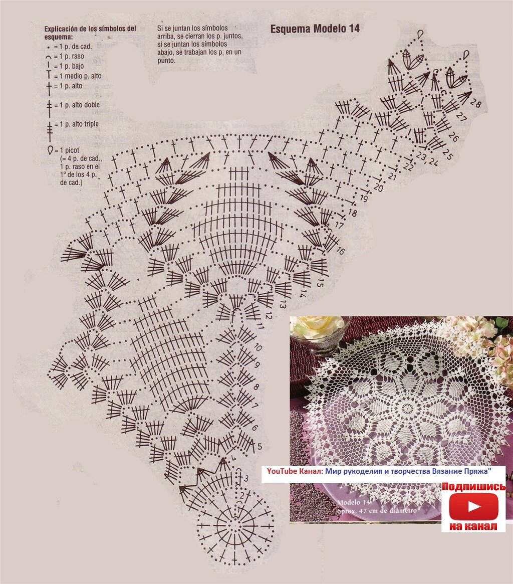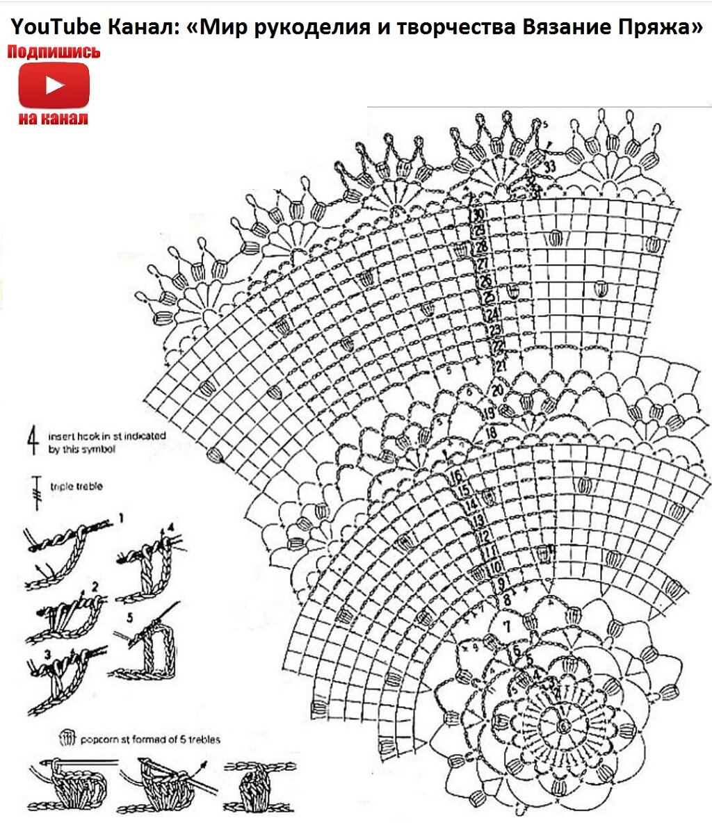 Все схемы для вязания салфетки есть в данной статье.