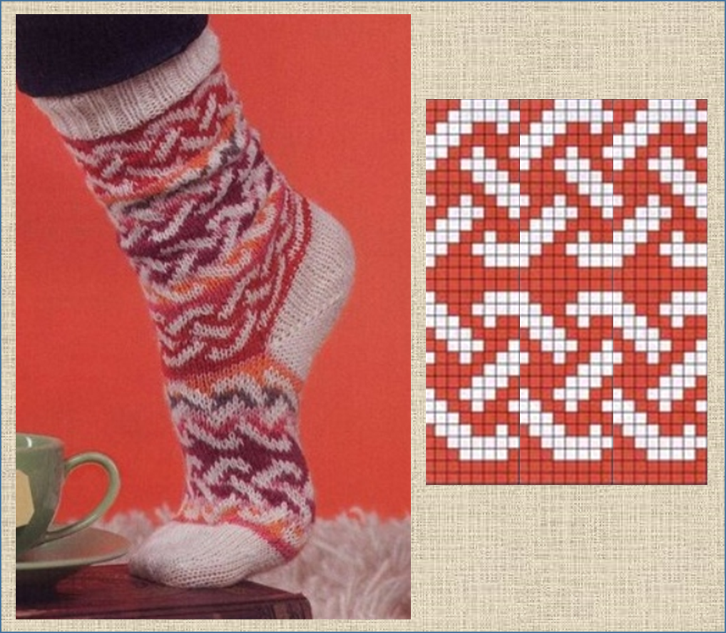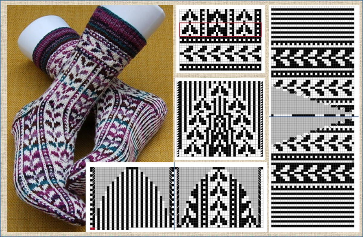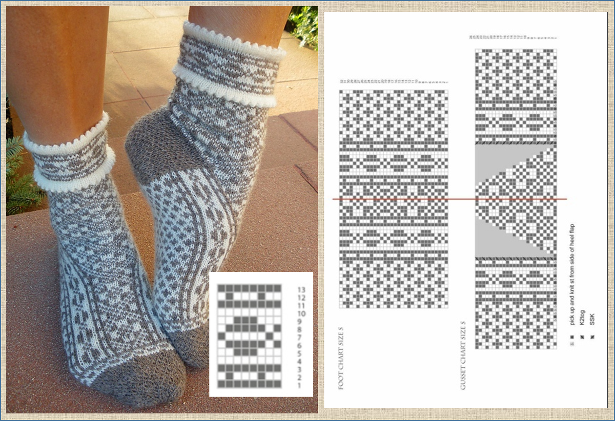 Сейчас я много вяжу для кукол - в основном жаккардовые комплекты из платьев и головных уборов, но хочу все же и на носочки переходить, поэтому активно коплю схемы и модели. Ну и с вами конечно же делюсь. Забирайте в свои копилочки.