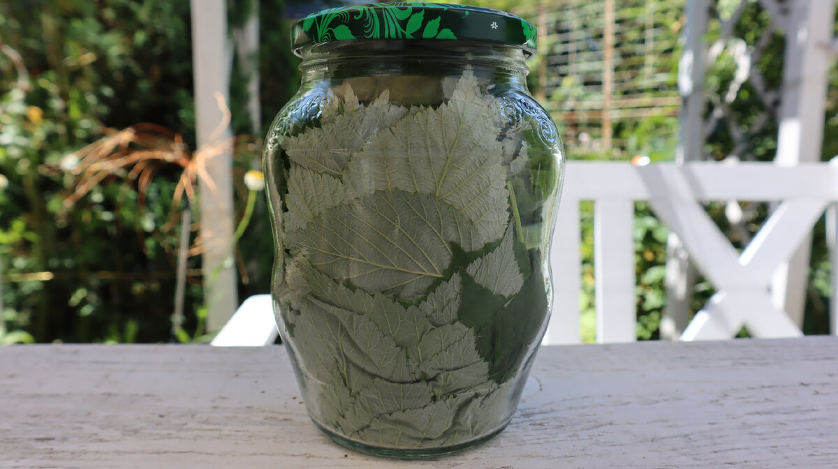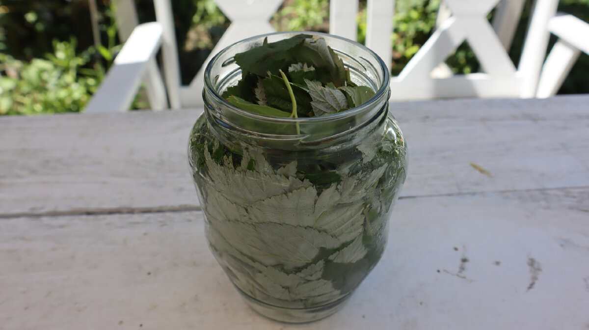 Листья оборвала от веточек. Положила все это в стеклянную банку и плотно закрыла крышкой. Банку надо поставить в теплое место, куда не попадают прямые солнечные лучи. У меня это теплица.