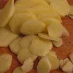 5. Корень имбиря либо режем тонкими пластинами, либо натираем на терке (пластинами) и укладываем их сверху на рульку.