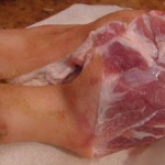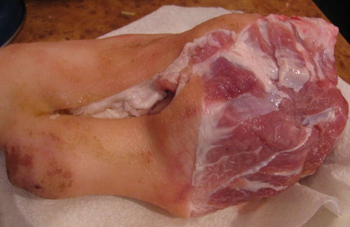 1. Помытую и высушенную полотенцем рульку, необходимо осмотреть со всех сторон на наличие дефектов. Если таковые обнаружены их необходимо осторожно срезать ножом.