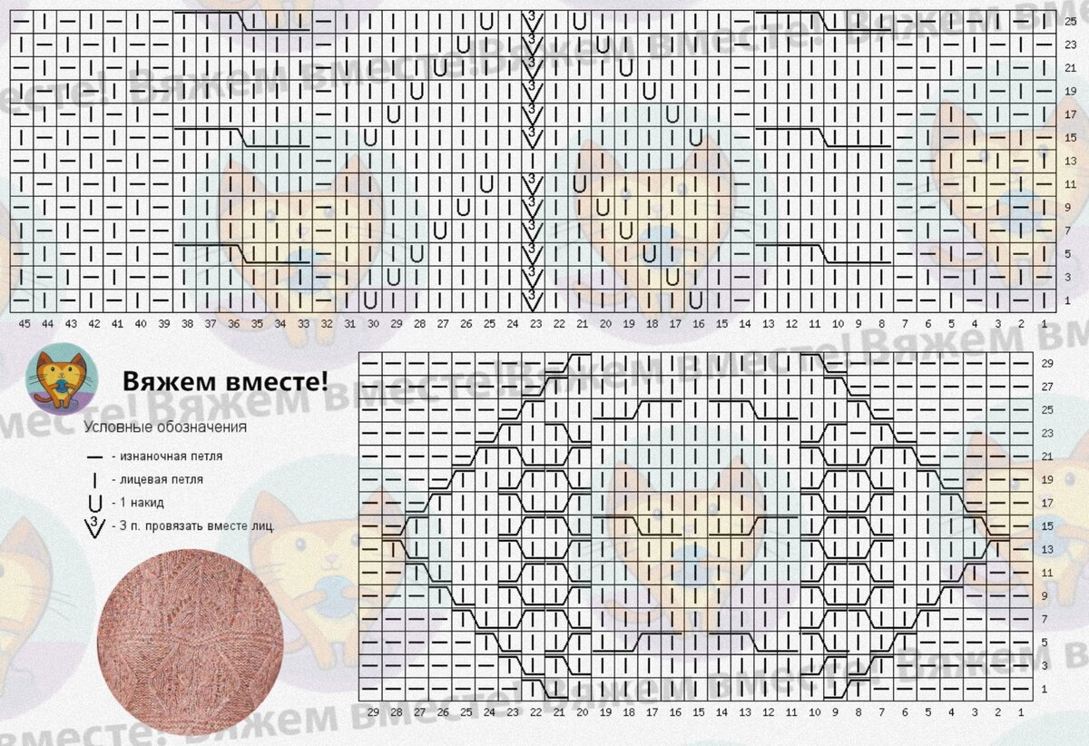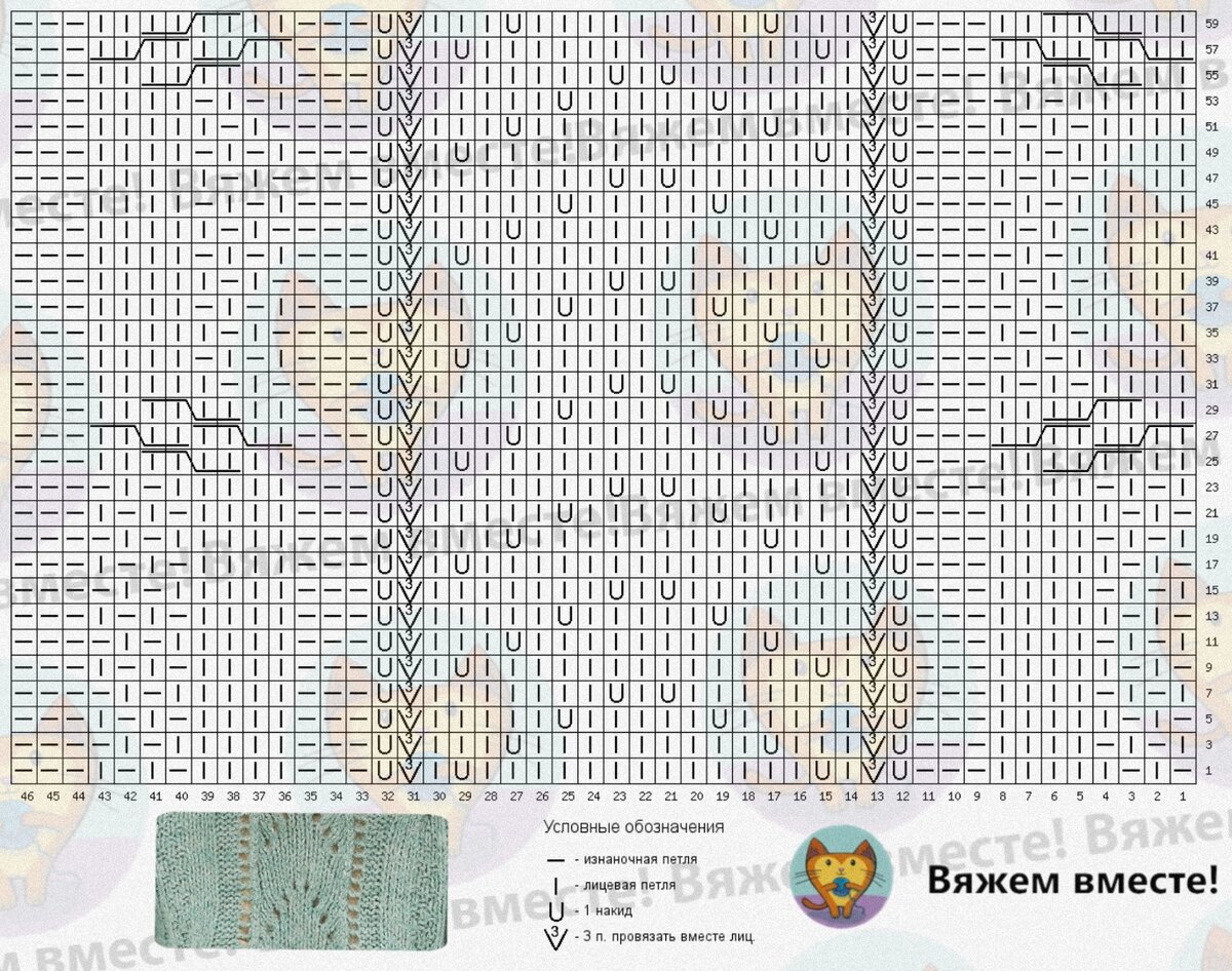 При желании можно поэкспериментировать с ажурным узором и выполнять накиды не в каждом втором ряду, а в каждом четвертом в порядке, указанном на схеме.