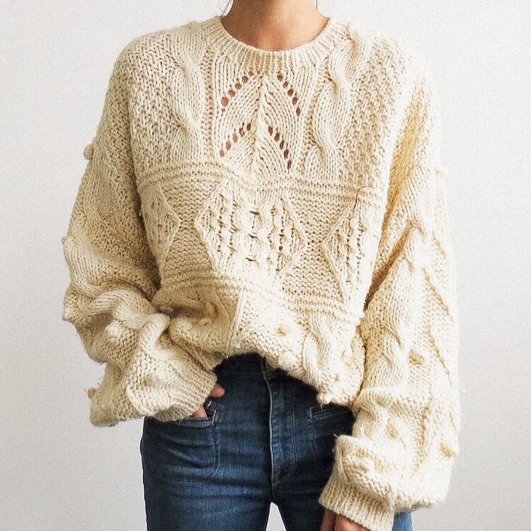 Такую модель можно запросто повторить на спицах, владея минимальным опытом вязания плечевых изделий с втачными рукавами, а если рукав спустить, то с изделием справится даже начинающая рукодельница.