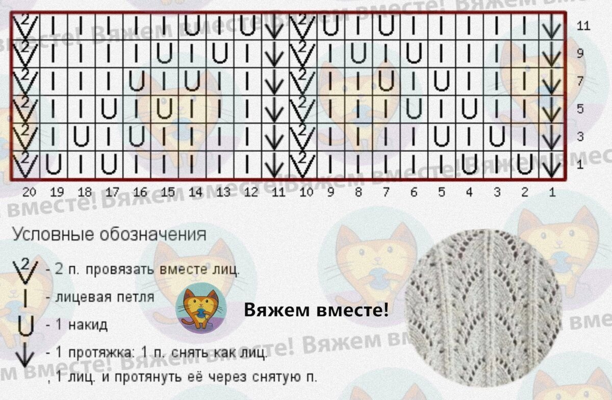 Рукава и спинка выполняются патентной резинкой, а часть переда в области кокетки вяжется ажурным узором по схеме ниже.