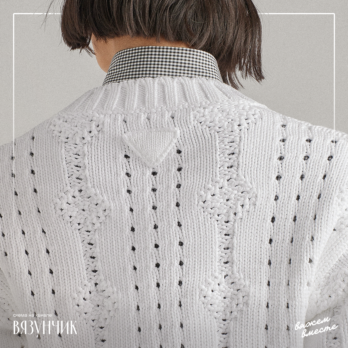 В коллекции бренда сразу два предмета связаны одним и тем же паттерном — пуловер и кардиган.