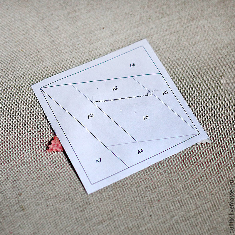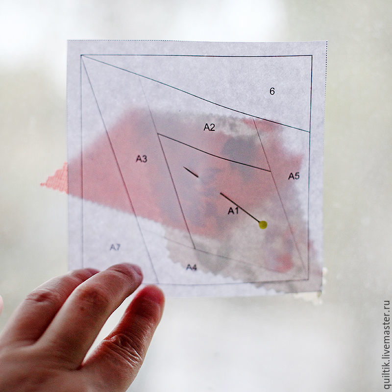 Прикалываем деталь 1 на соответствующий сегмент изнанкой к чистой стороне бумаге.