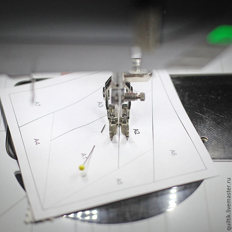 Два варианта. Первый. Ровно подрезать наши блоки, используя роликовый нож, снять бумагу и сшить блоки. Что предпочтительнее, потому что «ковырни» с бумагой будет меньше.