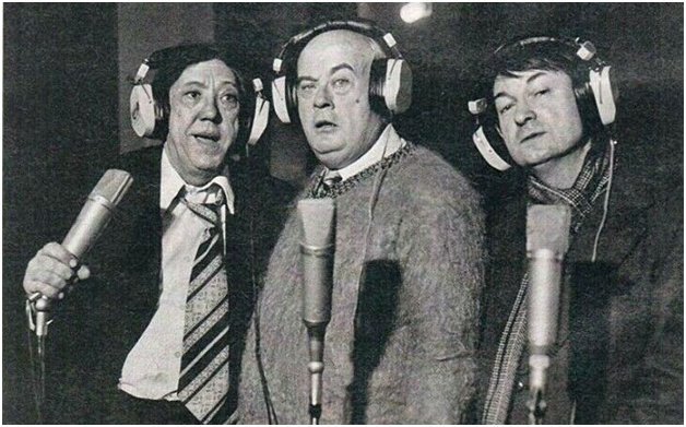 Знаменитая троица Вицина, Моргунова и Никулина запечатлена на камеру во время звукозаписи их выступления.