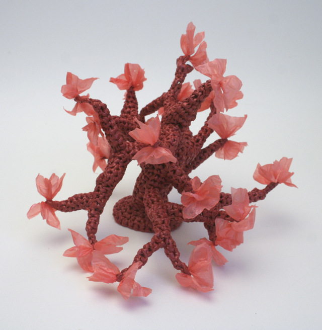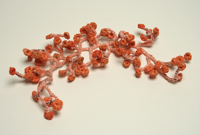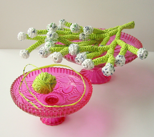 Наш Мир постепенно перестраивается и люди стараются использовать всё больше экологически чистые материалы в своем жилище, в своем окружении переходить на дружелюбные экологии материалы, и полиэтилен в список наших друзей не попадает. Мы ежедневно выкидываем полиэтиленовые пакеты тоннами, обрекая нашу планету на тысячелетнее переваривание этого дешевого по нынешним меркам материала. А ведь его можно использовать в «мирных» и очень даже эстетичных целях. Как, например, это делает Хелле Йоргенсен из Австралии – из полиэтиленовых пакетов она вяжет женские украшения и элементы интерьерного декора.