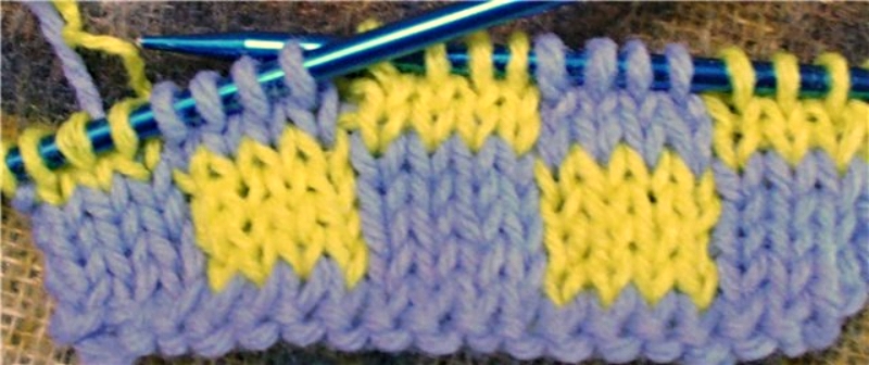 Если у Вас все получилось великолепно с узором 1 X 1,- то давайте теперь свяжем шахматку 4 X 4 Здесь уже перетягивание нити более длинное, а значит и задача связать правильно--немного посложнее...