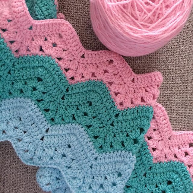 Очень красивый узор крючком зубчиками идеален для пледов и палантинов.