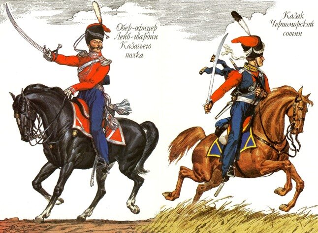 Обер-офицер лейб-гвардии Казачьего полка и казак Черноморской сотни, входившей в состав лейб-гвардейцев