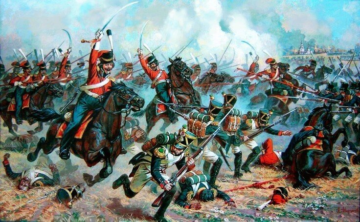 Русская кавалерия в Бородинском сражении. На переднем плане генерал Уваров, за ним на белой лошади – граф Орлов-Денисов