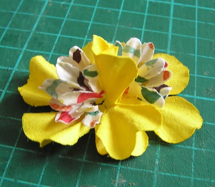 Выбираем еще 2 цветка контрастного цвета, и с каждым проделываем манипуляцию - складываем пополам и еще раз пополам