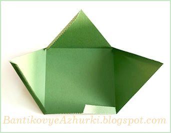 Потом аккуратно сгибаем основу (можно с помощью линейки):Укладываем наш подарочек в серединку и собираем коробочку: