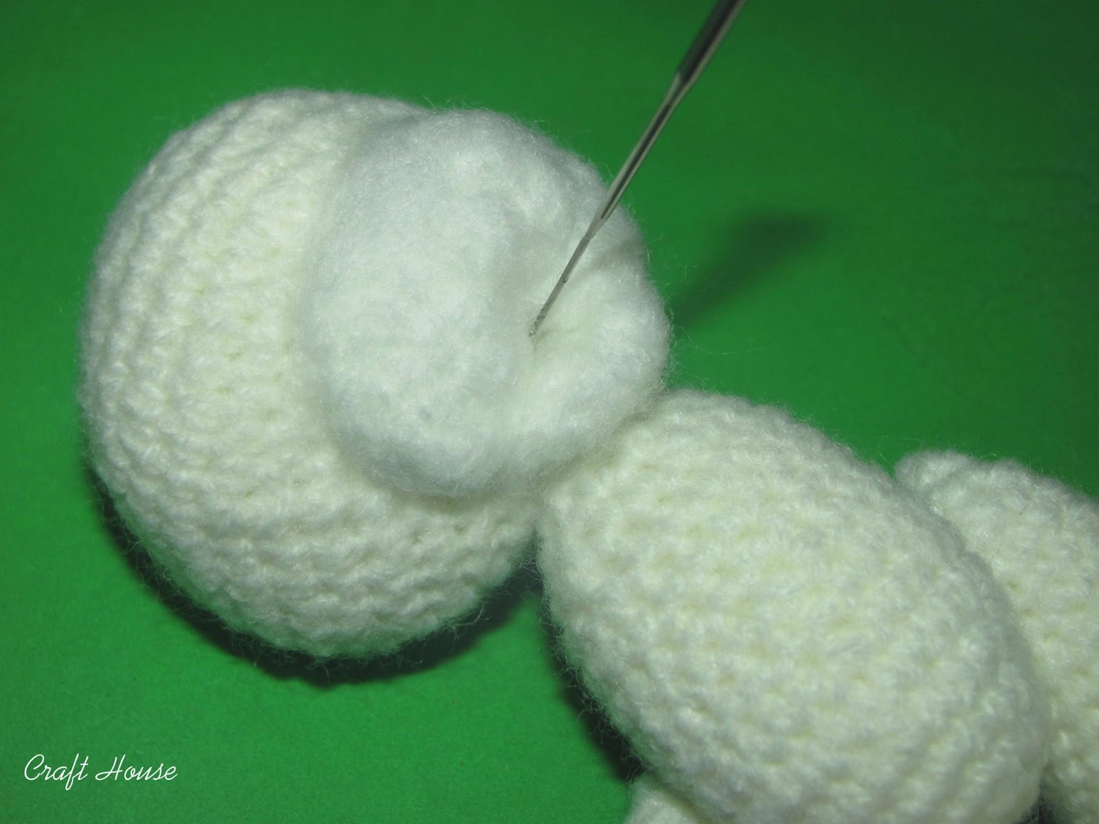 4-5 й ряд: 20 ст. б/н. Набить не очень плотно, пришить. На вязаной мордашке носик можно вышить (нитками типа "Ирис").