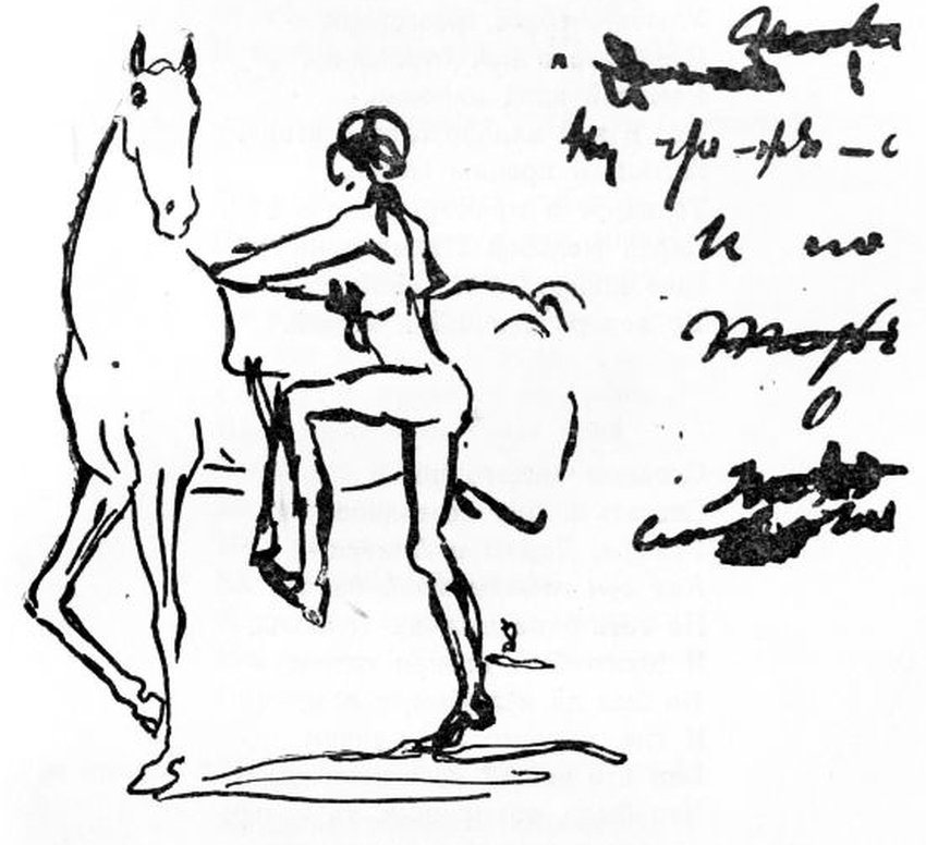 Ничто не отвлекало его от мыслей во время этих одиноких прогулок. Он сочинял. Природу лошади Пушкин знал и чувствовал как всадник. С удивительной меткостью закреплял его быстрый рисунок — по памяти, дома —мгновенные движения животного.