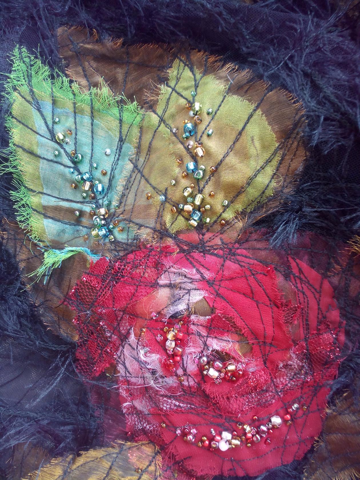 Ткани лучше использовать те, которые хорошо распускаются по краю и не плотные - шифон, шелк, органза. Можно немного кружева для фактуры.