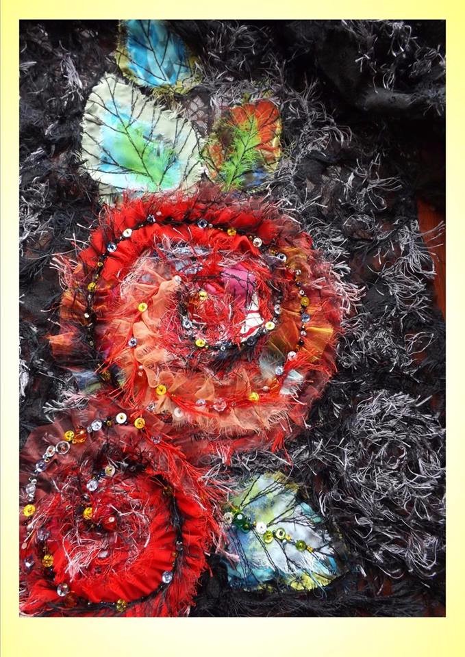 4. Когда выложим лепестки, выкладываем нити. Разные. Но хороший эффект объема дает нитка "травка".