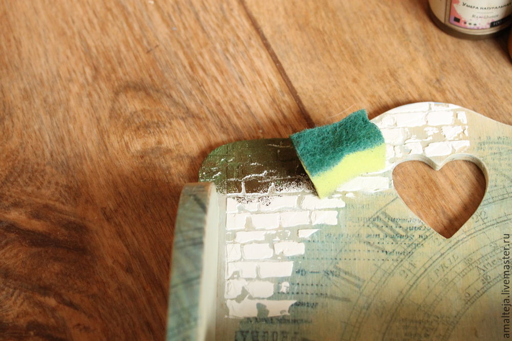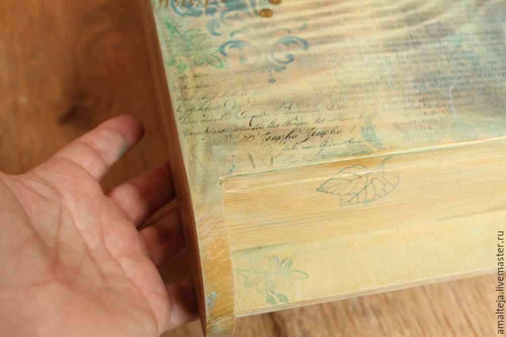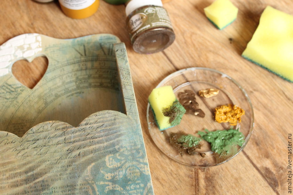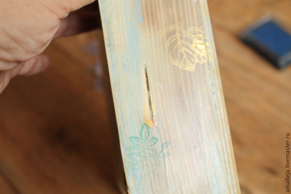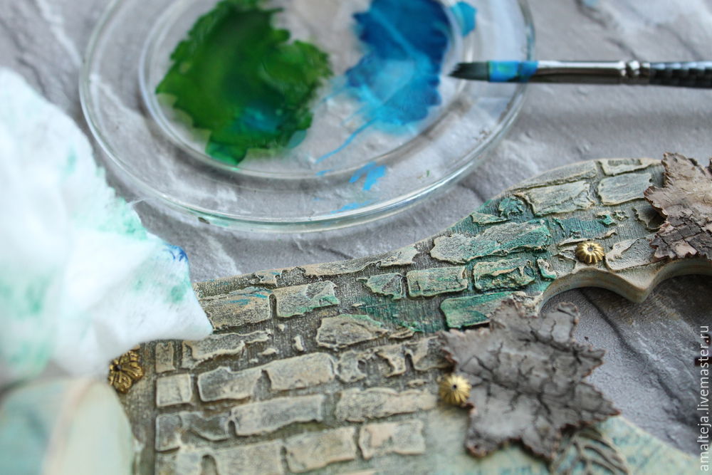 Дальше морю акриловыми красками. Сначала голубой, развожу краску и такой голубой водичкой прохожусь по ключнице.