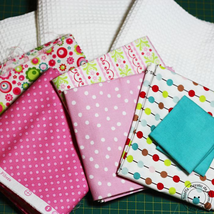 Ткани или лоскуты различных расцветок и полотенечная ткань или полотенца.