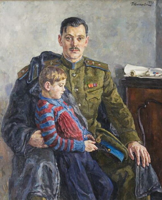 П.Кончаловский "Портрет Сергея Михалкова с сыном." 1943 год, как раз время написания гимна.