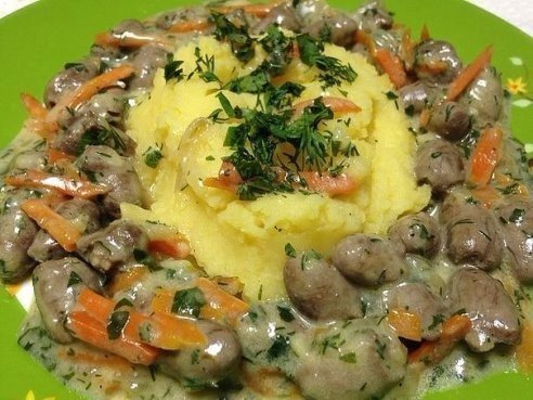 7) КУРИНЫЕ СЕРДЕЧКИ В СЛИВКАХ