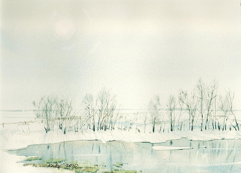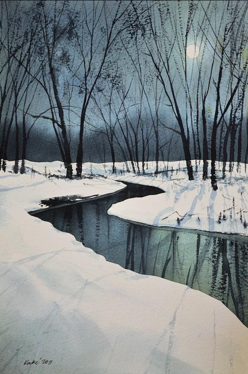 Abe Toshiyuki - этот японский мастер акварели и в изображении снега изящен и точен.