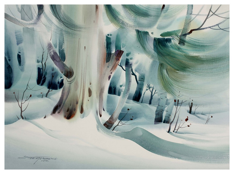 Sterling Edwards - очень необычная акварель и очень необычный снег!