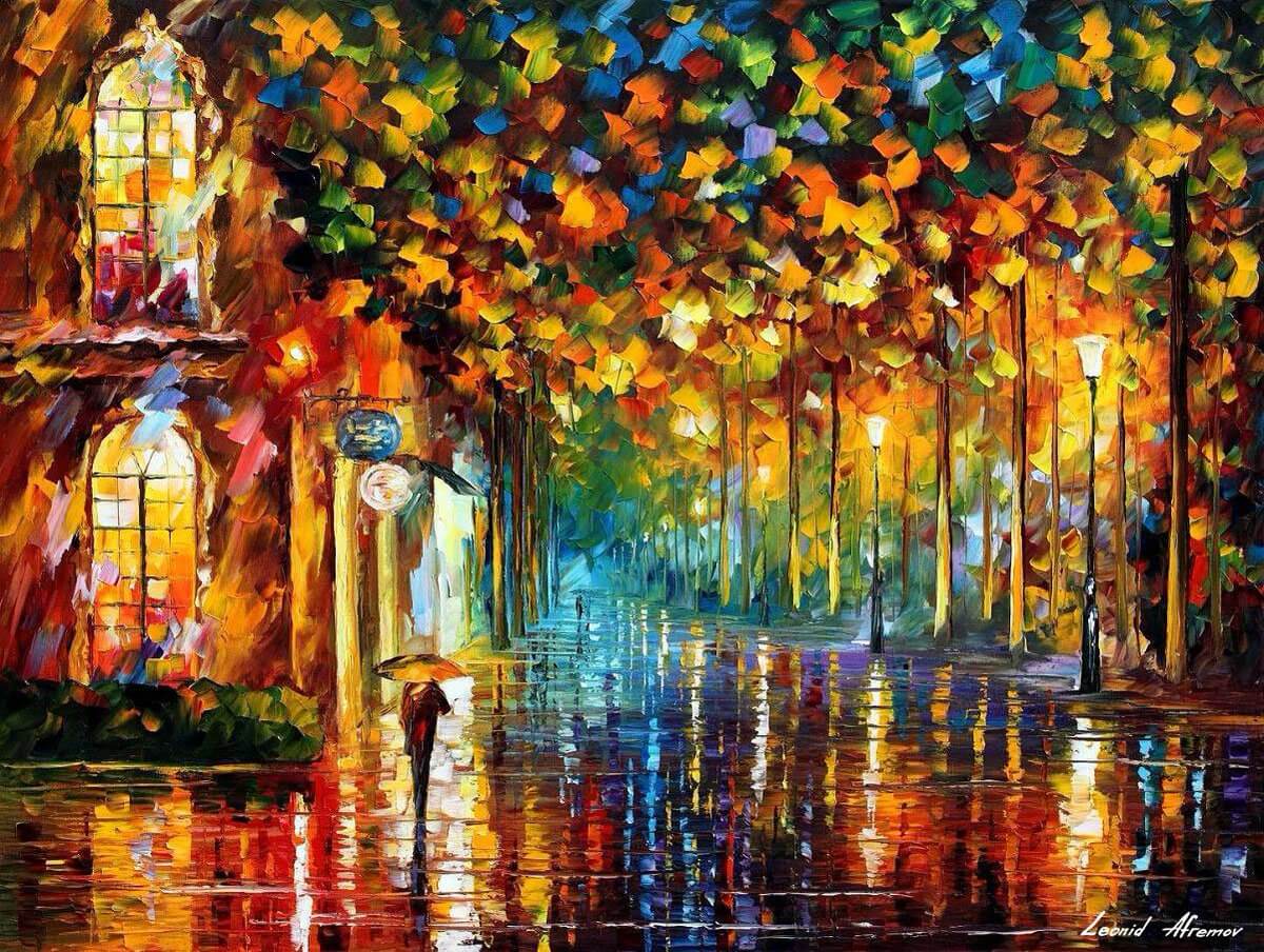 Леонид Афремов – русско-израильский художник-импрессионист. Он родился в 1955 году в Витебске, в 1978 там же окончил художественное училище. Не получив на родине должного призвания, в 1990-м уехал в Израиль, а 2002-м году Афремов переехал в Соединенные Штаты. В 64 года умер, оставив после себя поистине великие для России произведения.