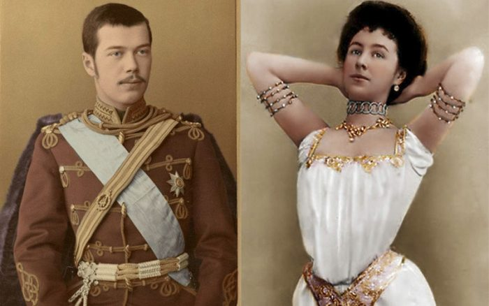 Вторая неожиданность оказалась воистину роковой. После представления выпускников следовал торжественный ужин, а за общим столом у Малечки тоже не было постоянного места. И государь опять распорядился по-своему — усадил Кшесинскую между собою и наследником, игриво погрозив обоим: «Смотрите только, не флиртуйте слишком!» Наследнику шел 21-й год. Кшесинскую сильнее всего поразили его голубые глаза, излучавший доброту взгляд. Маля потом не могла вспомнить, о чем они тогда говорили с Николаем, но сразу поняла, что влюбилась, и он тоже не остался к ней равнодушен: «Когда я прощалась с Наследником, который просидел весь ужин рядом со мною, мы смотрели друг на друга уже не так, как при встрече, в его душу, как и в мою, уже вкралось чувство влечения, хоть мы и не отдавали себе в этом отчета».