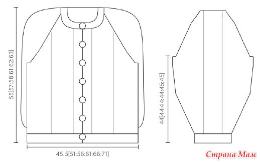 Сборка: сшить боковые швы и швы рукавов, пришить пуговицы.