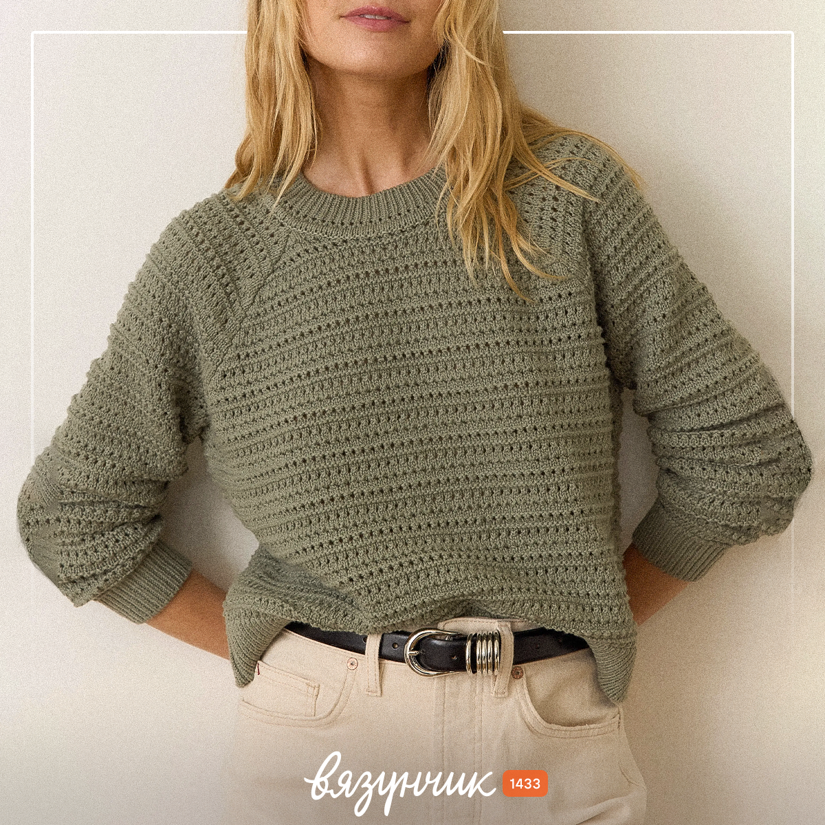 Джемпер связан сетчатым узором, но он не однообразный. Высота раппорта — целых 14 рядов!