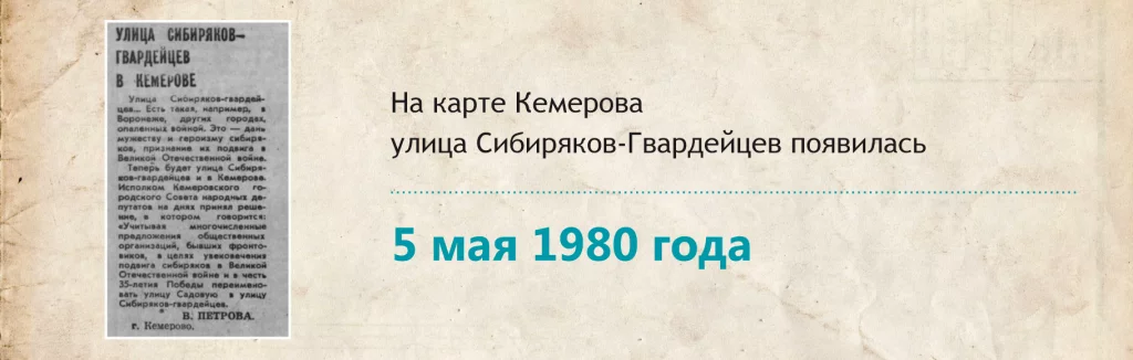Сейчас ее протяженность — около 6 км. Она соединяет по южной границе три района: Заводский, Центральный и Ленинский. Это одна из самых крупных магистралей в городе. На карте Кемерова она появилась 5 мая 1980 года. Именно тогда исполком Кемеровского совета народных депутатов принял решение переименовать Садовую в улицу Сибиряков-Гвардейцев.