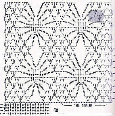 Вязать по приведенной схеме. Начать петлей перед 1-й стрелкой, затем повторить раппорт между стрелками = 23 п. 3 раза и закончить 6 п. после левой стрелки. В высоту повторить 1–12-й р. 22 (23) раза.