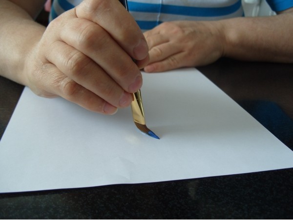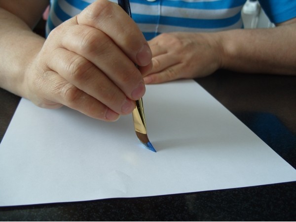 Ставим кисть торцом и сильно давим на нее, так что она расплющивается веером , тянем ее на себя ослабляя нажим и постепенно приподнимая, получаем капле-образный, полосатенький лепесток.