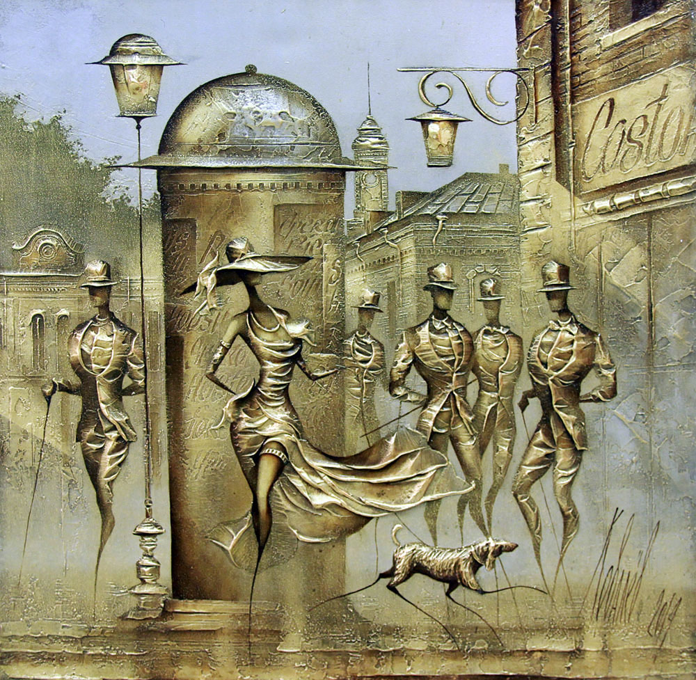 Автор стиля «Koval Style». Название стиля – это удачная игра слов с фамилией художника и визуальным исполнением картин. В некоторых языках слово «Коваль» обозначает кузнец или, что-либо связанное с ковкой. Рельефные работы создают впечатление чеканки по металлу либо ковки. Для создания своих работ художник не нуждается в молоте, щипцах и наковальне. Холст, масляные краски, кисточки и специальные скребки – помогают в воплощении творческого замысла. Но, как и подобает настоящему мастеру, есть свои секреты в создании завораживающих рельефных картин.