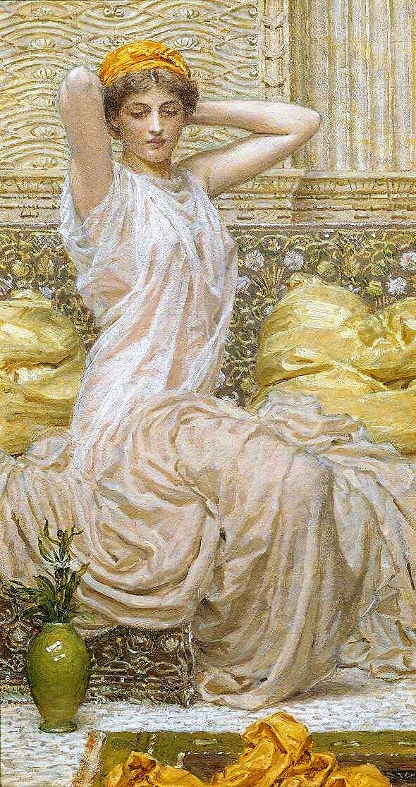 Как и во многих работах Мура, сюжет минимален — главное здесь созерцание красоты формы, цвета и покоя. Альберт Джозеф Мур (Albert Joseph Moore) (1841-1893) - художник пре-рафаелит Родился в Йорке (графство Йоркшир, Англия). Наименьший из 14 детей в семье художника Вильяма Мура. Отец был известным портретистом, брат Эдвин Мур - акварелистом и учителем, брат Вильям Мур - пейзажистом и учителем, брат Джон Колингем Мур - детским художником, пейзажистом и мастером жанрового рисунка. После смерти отца в 1850 г. семья переезжает в Лондон. Будущий художник обучается в художественной школе Kensington и впоследствии в Королевской Академии Искусств. Уже в то время в его картинах чувствовалось влияние школы пре-рафаелитов, художественного стиля, появившегося в результате синтеза современного символизма и романтичных образов.