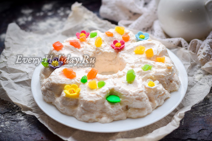 Это отличный вариант для нежданных госте. Основой в торте выступает творог, также сюда добавляется немного сливочного масла, сметана, печенья, по желанию можно добавить фрукты и сухофрукты.