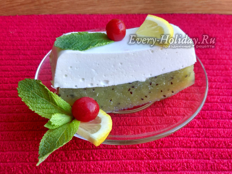 Двухцветный желейный торт эффектно смотрится на праздничном столе, достойно завершает трапезу и очень нравится детям.