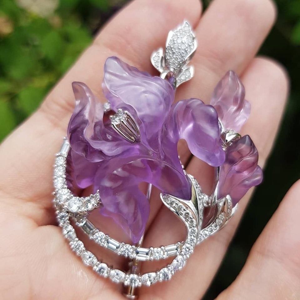 Брошь "Лилия". Золото, бриллианты, халцедон.Брошь, изготовленная компанией Binder jewelry.