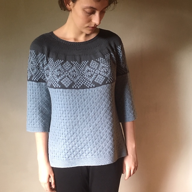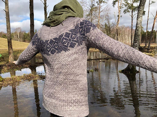 Схемки и описание на норвежском языке по ссылке https://dalegarn.no/wp-content/uploads/2019/07/DG_391.. https://dalegarn.no/oppskrift/dg391-04-vidar-genser-j..