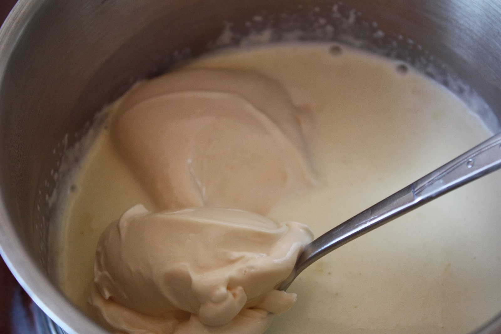 Сливки доводим ПОЧТИ до кипения, уменьшаем огонь, добавляем плавленый сыр и помешиваем, пока сыр не расплавится.