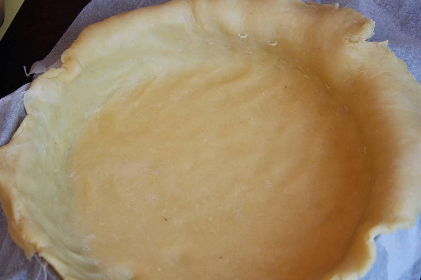 Тесто делим на 2 части. Одну бОльшую раскатываем толщиной примерно 5 мм и укладываем в форму, смазанную маслом. Форма 26 см.