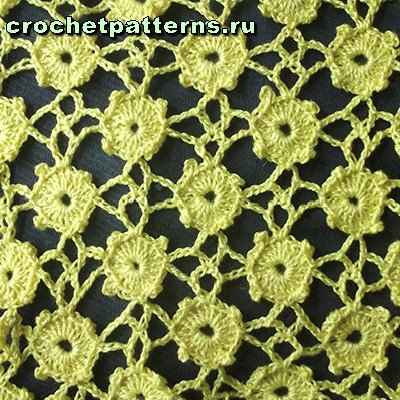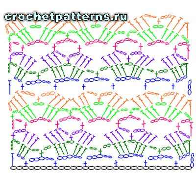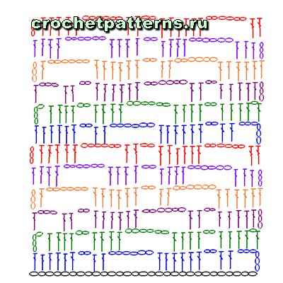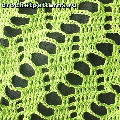 полустолбик. Накид, введите крючок в полотно, захватите рабочую нить и протяните ее - на крючке 3 петли. Провяжите их вместе за один прием. |