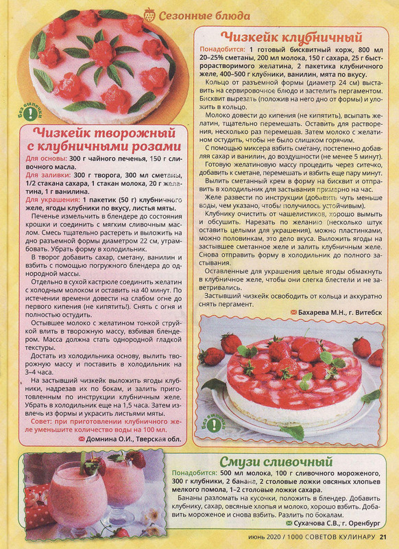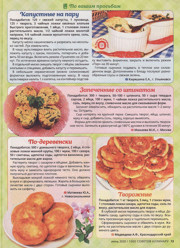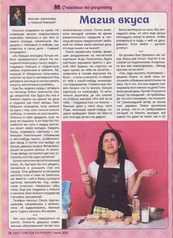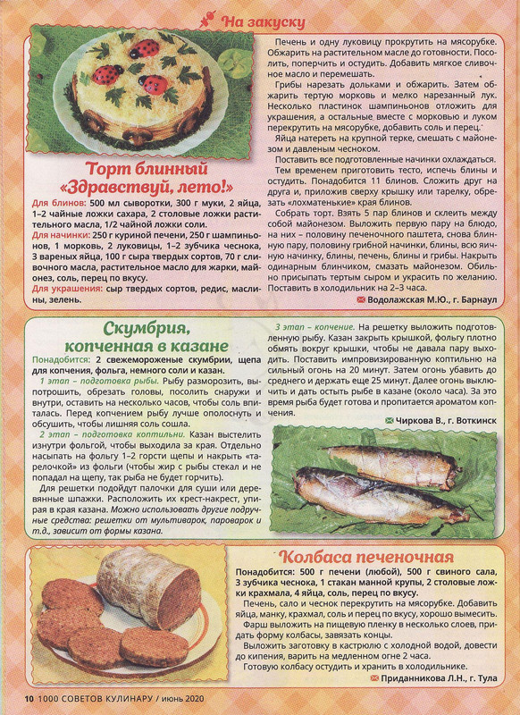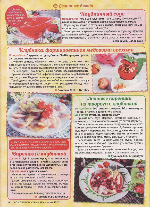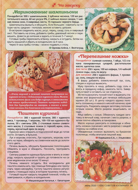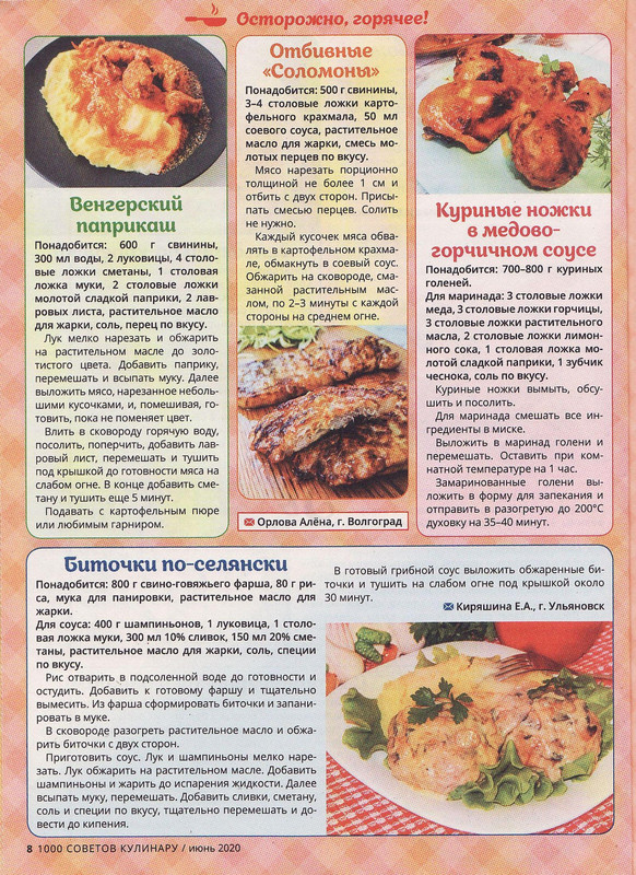 Кулинарные хитрости от шеф-поваров и опытных хозяек, фирменные рецепты читателей, советы по питанию и проч.