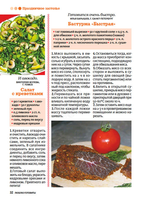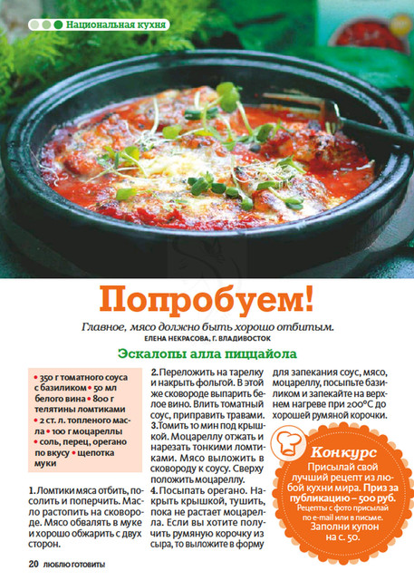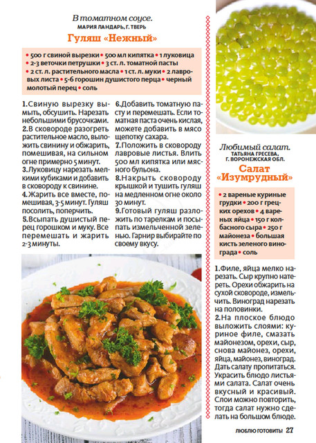 Журнал о вкусной еде публикует рецепты блюд, которые многократно проверены опытными хозяйками и которыми можно баловать родных и удивлять гостей.