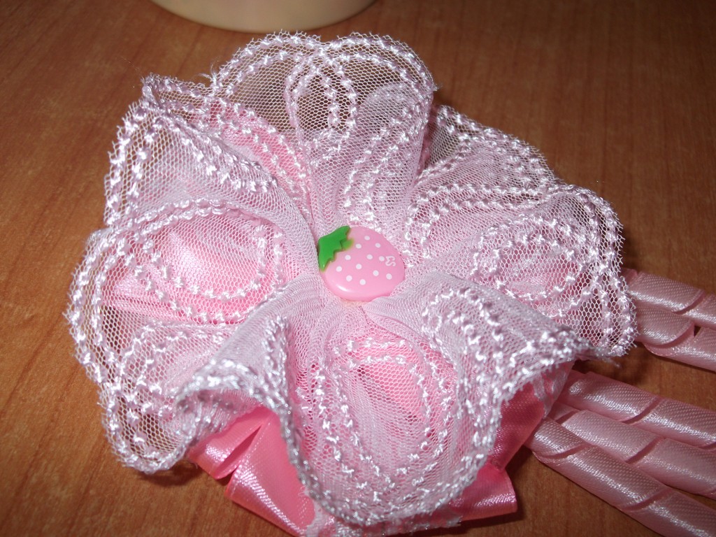 Берем атласную ленту шириной 5см., широкое кружево - не менее 5 см., узкое кружево - 2,5-3см., узкую ленту 1-1,5 см. шириной и красивую пуговку или полубусину.