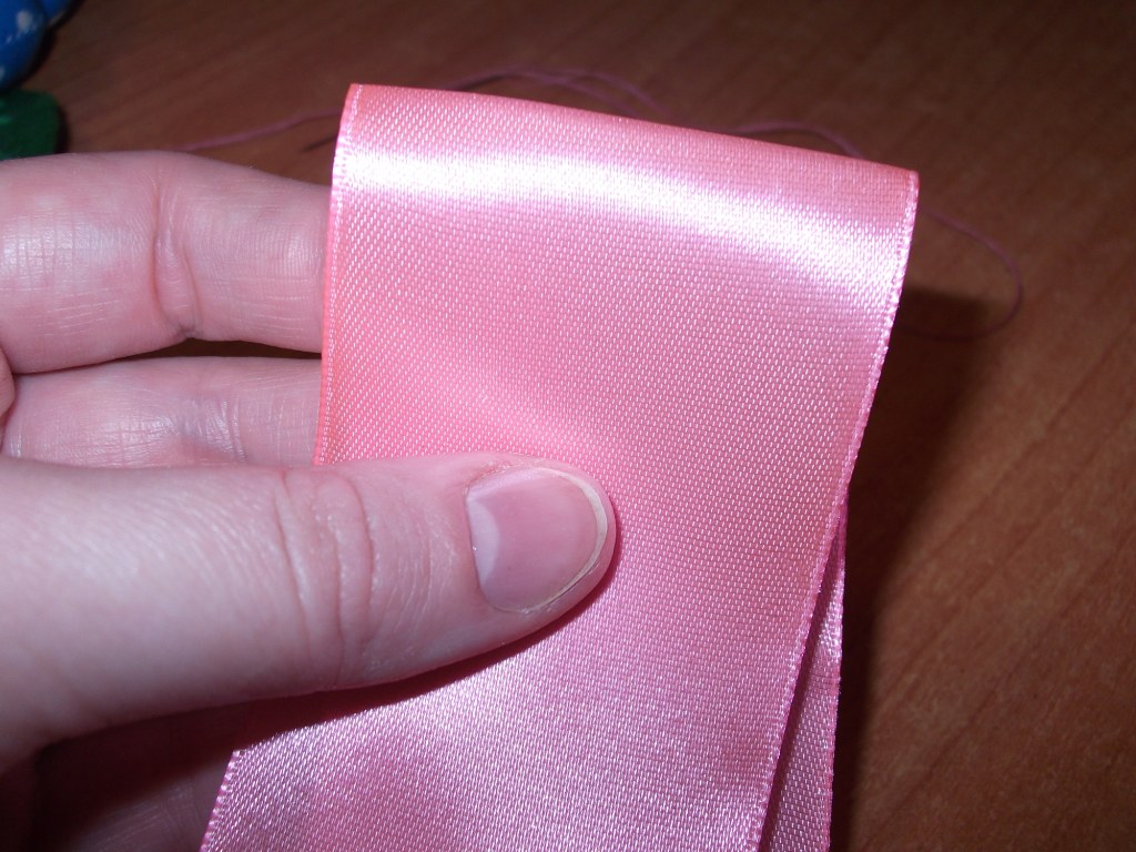 широкую ленту ( длина 21-23см.) сложим пополам чтоб отметить середину.